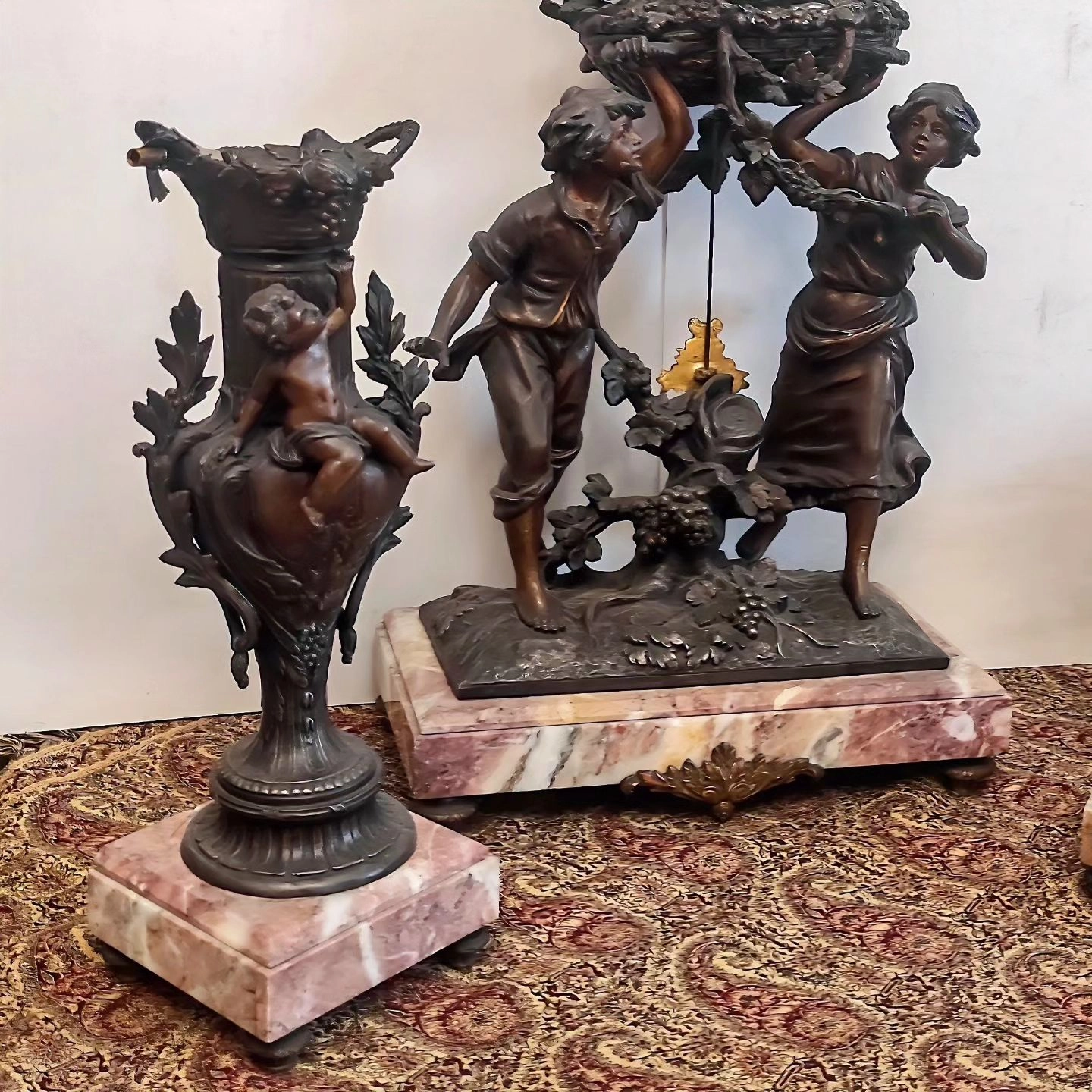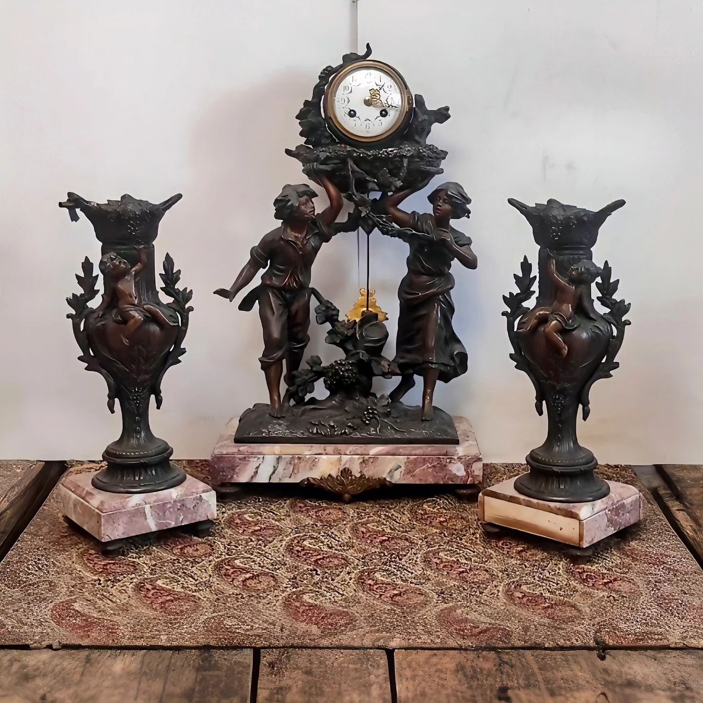 ساعت و شمعدان قلع و سرب دو کوک پاندولی برند مورعو فرانسه