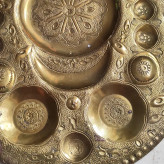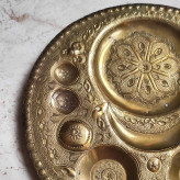 متاسفانه این کالا در حال حاضر موجود نیست. میتوانید از طریق لیست بالای صفحه، از محصولات مشابه این کالا دیدن نمایید.پالت حنا / قطر ۱۹ این پالت حنا با طراحی زیبا و نقشهای ظریف، از جنس برنجی ساخته شده است. جزئیات برجسته و بافت دقیق آن، نمادی از هنر و سنتهای دستی است که در مراسم مختلف مورد استفاده قرار میگیرد.