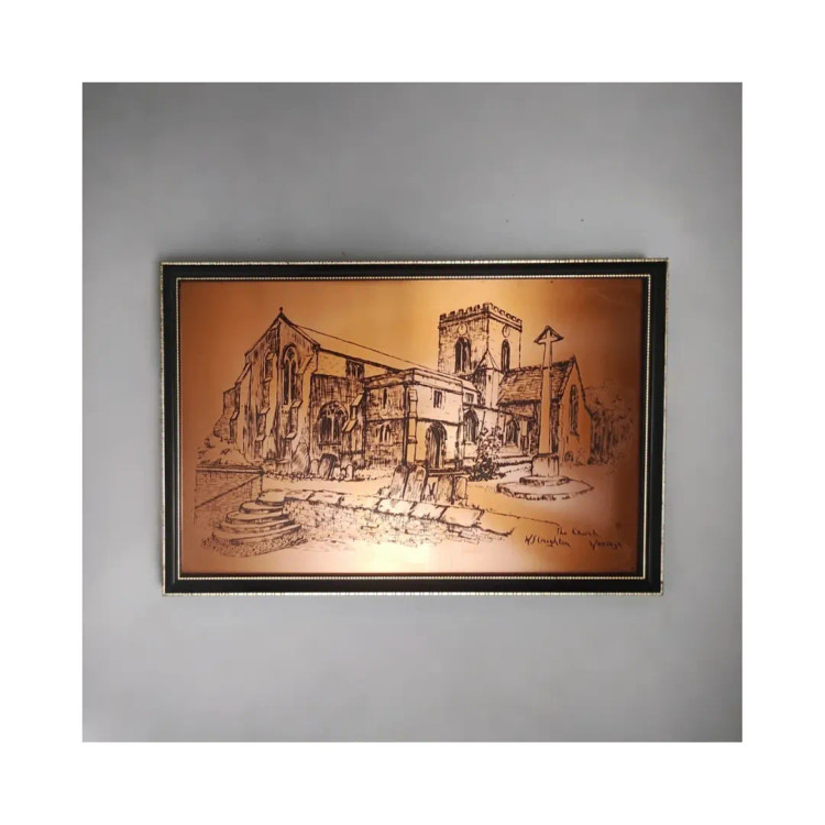 اثری فاخر حکاکی روی مس متعلق به سال ۱۹۷۰ با ابعاد ۲۸در۱۸ سانتیمتر.