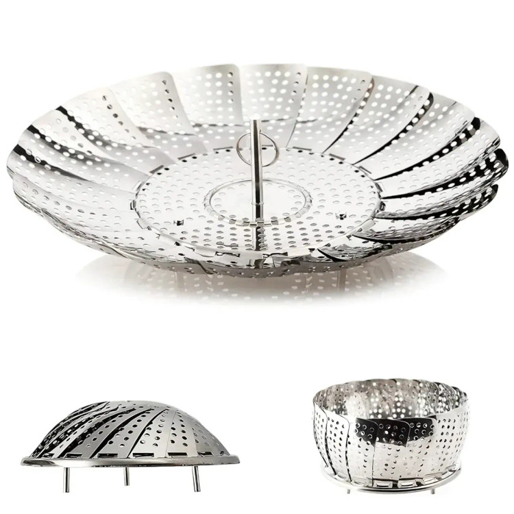 ظرف بخارپز پایه دار برای انواع خوراک ، میوه و سبزیجات. قابلیت تنظیم بین ۲۴سانتیمتر قطر.